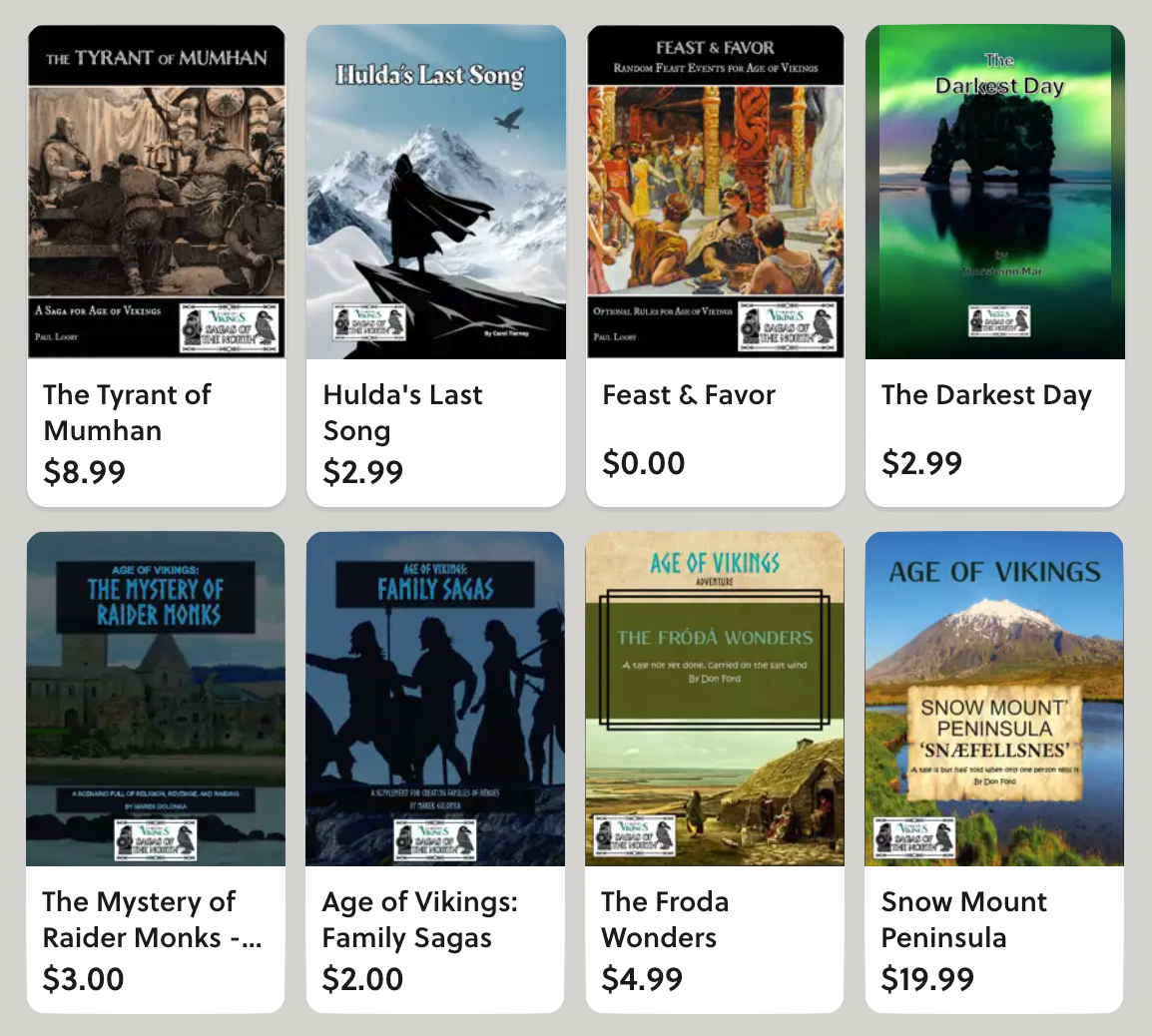 We're pleased to announced the arrival of Sagas of the North, a new community content program for Chaosium's award-winning Age of Vikings roleplaying game.